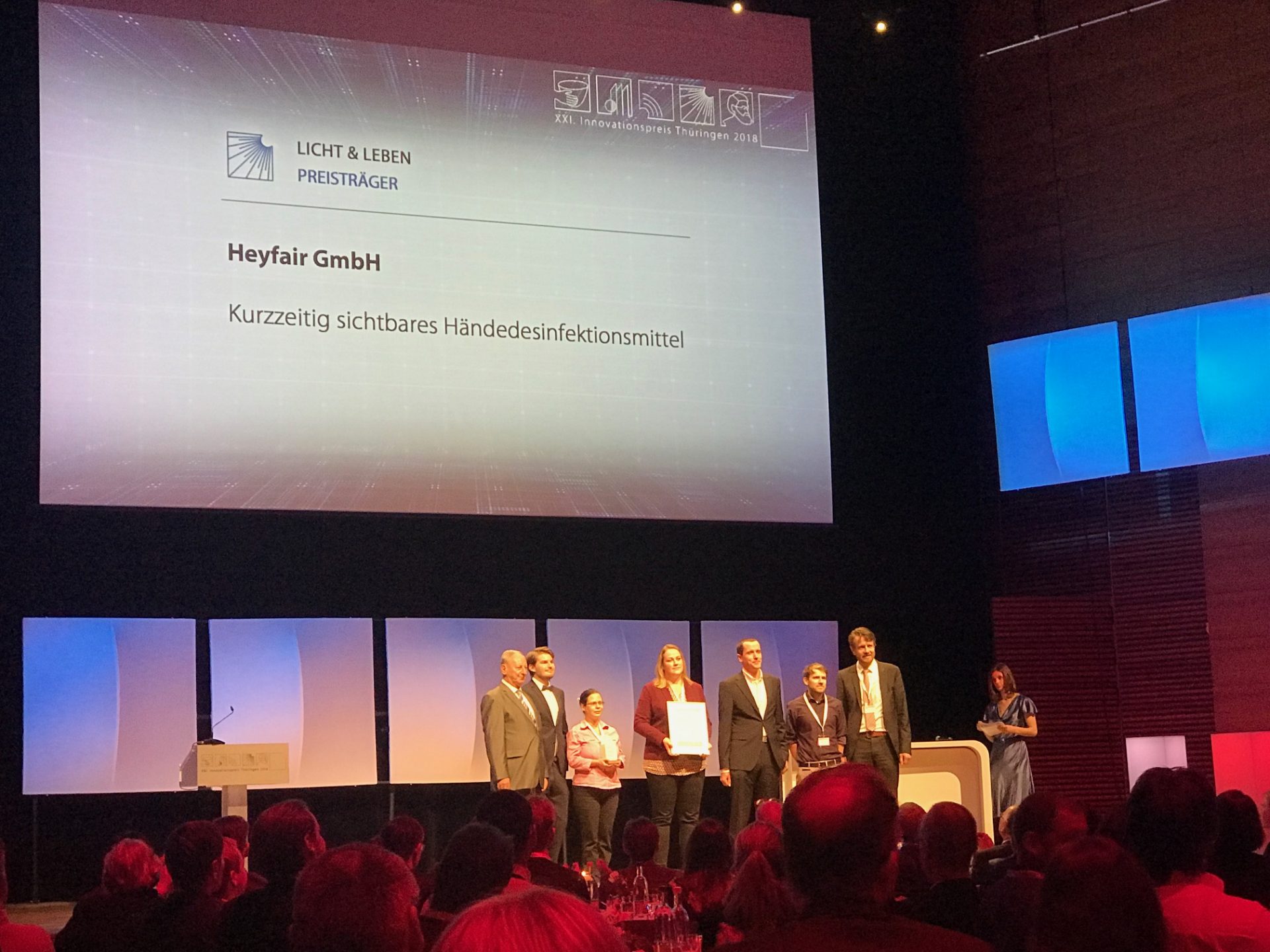 On 14.11.2018, the “XXI Inno­va­tion Award Thuringia” with prize money totalling 100,000 euros was awarded in Weimar. Of the five award-win­ning inno­v­a­tive com­pa­nies, Hey­fair GmbH and Pflege­platz­man­ager GmbH were once again two of bm|t’s Investee Partners.